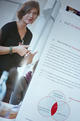 12.01.2013Am Thema Bürgerbeteiligung sieht man deutlich wie sehr sich die Verwaltung der Stadt Mannheim verändert. Gerade ist eine Handreichung für die Verwaltung erschienen, in der gute Beispiele der Bürgerbeteiligung in Mannheim beschrieben werden sowie anschauliche Tipps wie man Bürgerbeteiligungsmaßnahmen selbst umsetzen kann und der ganze Prozess der Beteiligung in der Stadt beleuchtet wird. Die Broschüre ist schön aufgemacht ;-) und barrierefrei gestaltet.