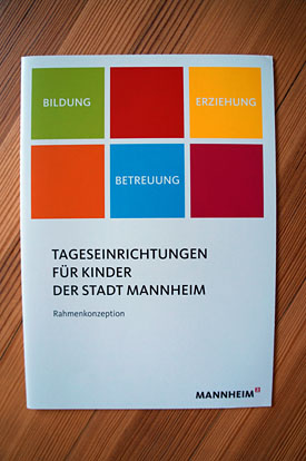 28.06.2013Der Fachbereich Kinder, Jugend und Familie in Mannheim hat sich neu sortiert. Zum Thema Tageseinrichtungen für Mannheimer Kinder ist eine 36-seitige Rahmenkonzeption erschienen, in der u.a. auf den aktuellen Forschungsstand und pädagogische Standards eingegangen wird. Die Broschüre ist durchgängig 4-farbig und mit schönen Fotos gestaltet.