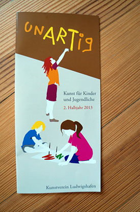 04.09.2013Das Kurs-Programm fürs zweite Kunsthalbjahr von unARTig ist erschienen. Und psssst die Kinder- und Jugendkunstschule hat ihr Programm auch für bedürftige Erwachsene erweitert ;-) Im Ernst es gibt auch wieder zwei Kurse für Erwachsene und wie immer wird für Kinder und Jugendliche ab 4 Jahren viel Schönes angeboten. Die Gestaltung des Programm macht mir immer Freude.