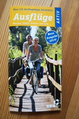 06.05.2014Pünktlich zum Maimarkt ist die neue, aktualisierte Ausflugsbroschüre Aktiv des VRN erschienen. Der Klassiker mit über 115 Outdoor-Ausflugstipps ist sehr beliebt und wird kostenlos über den VRN und seine Partnerunternehmen verteilt. Ein Schwerpunkt in diesem Jahr liegt auf Ausflügen mit Bahn und Bike. Schöne Kombi, wenngleich ich persönlich lieber zu Fuß unterwegs bin. Schöne Wanderungen sind natürlich auch beschrieben. Also dann ab in den Sommer.