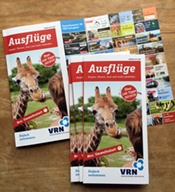 07.05.2019Zum Maimarkt ist die erweiterte und aktualisierte Ausflugsbroschüre des VRN erschienen. In diesem Jahr wird von vielen Ausflugszielen ein Umweltrabatt gewährt für Besucher, die mit dem ÖPNV angereist sind. In der vorderen Umschlagklappe sind alle Anbieter mit einem Rabatt-Kärtchen vertreten. Ansonsten ist das bewährte Konzept geblieben: Einladender Text, Bild und Infoblock. Man kommt beim Durchblättern wirklich in Ausflugsstimmung.