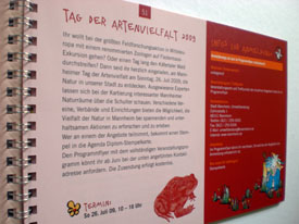 27.04.2009Das neue Agenda Diplom ist da! Die Broschüre richtet sich an Mannheimer Kinder zwischen 8 und 12 Jahren und enthält alle diesjährigen Veranstaltungen, sowie Informationen zum Procedere. Die Broschüre ist inzwischen ein echter Klassiker unter meinen Arbeiten und es ist schön, dass sie von Jahr zu Jahr dicker wird, da sich immer mehr Veranstalter engagieren. Somit wächst das Engagement für eine nachhaltige Entwicklung.