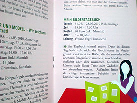 30.12.2009Anfang des neuen Jahres wird das aktuelle Kurs-Programm der Kinder- und Jugendkunstschule unARTig in Ludwigshafen beginnen. Es besteht wieder aus einem breit gefächerten Workshop-Angebot zu den Themen Fotografie, Malerei, Sprache, Collage und vielem mehr. Eine Besonderheit sind die Führungen von Kindern für Kinder durch die Ausstellungen des Kunstvereins. Kinder, die dazu Lust haben werden auf die Führungen gut vorbereitet und können dann bei einer öffentlichen Führung den Schulkameraden, Freunden und Besuchern etwas über die ausgestellten Kunstwerke erzählen.