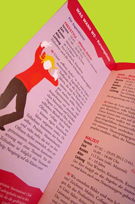 Den Flyer mit den Illustrationen zu gestalten macht mir immer wieder Spaß und es freut mich, dass die Kunstschule so großen Anklang findet.