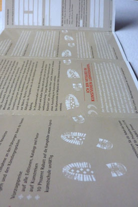 11.01.2012in den Kunstverein Ludwigshafen. Mit einer neuen Mitgliederbroschüre wirbt der Kunstverein für neue Mitglieder. Mit der Mitgliedschaft unterstützt man nicht nur das erstaunlich agile Kulturleben in der Stadt Ludwigshafen sondern hat auch ein paar ganz eigennützige Vorteile (Vorzugskaufrecht, freie Eintritte, Teilnahme an Studienfahrten etc.). Die Broschüre erscheint in neuem Layout und ist über den Kunstverein zu beziehen.