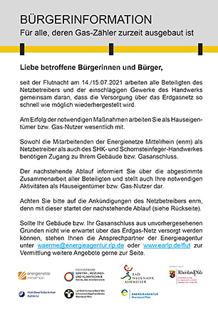 Zur Wiederherstellung ihres Gas-Anschlusses